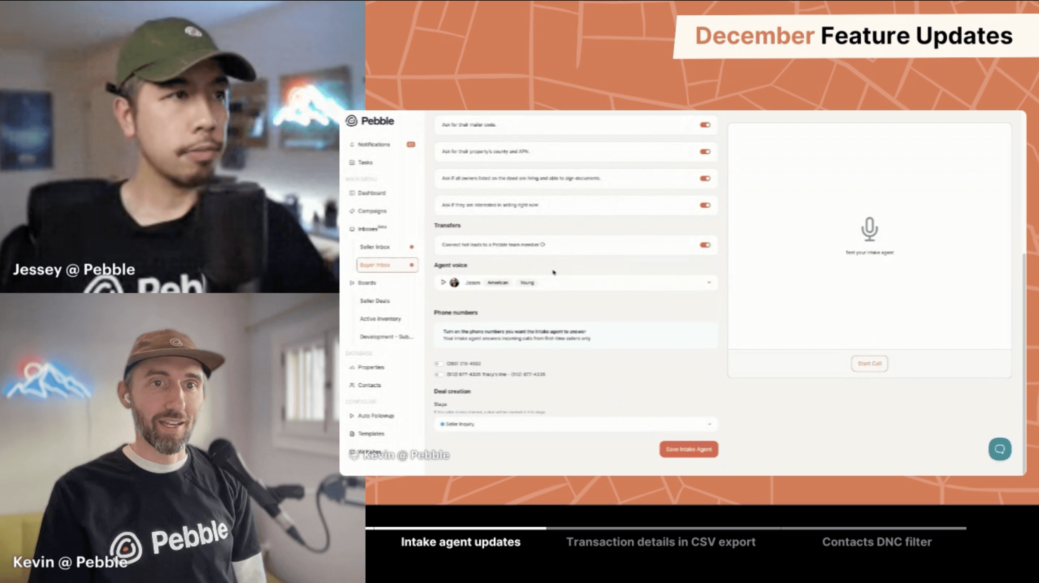 We’re continuing to take feedback in on our new Pebble Intelligence Intake Agent. Stay tuned for updates coming soon.