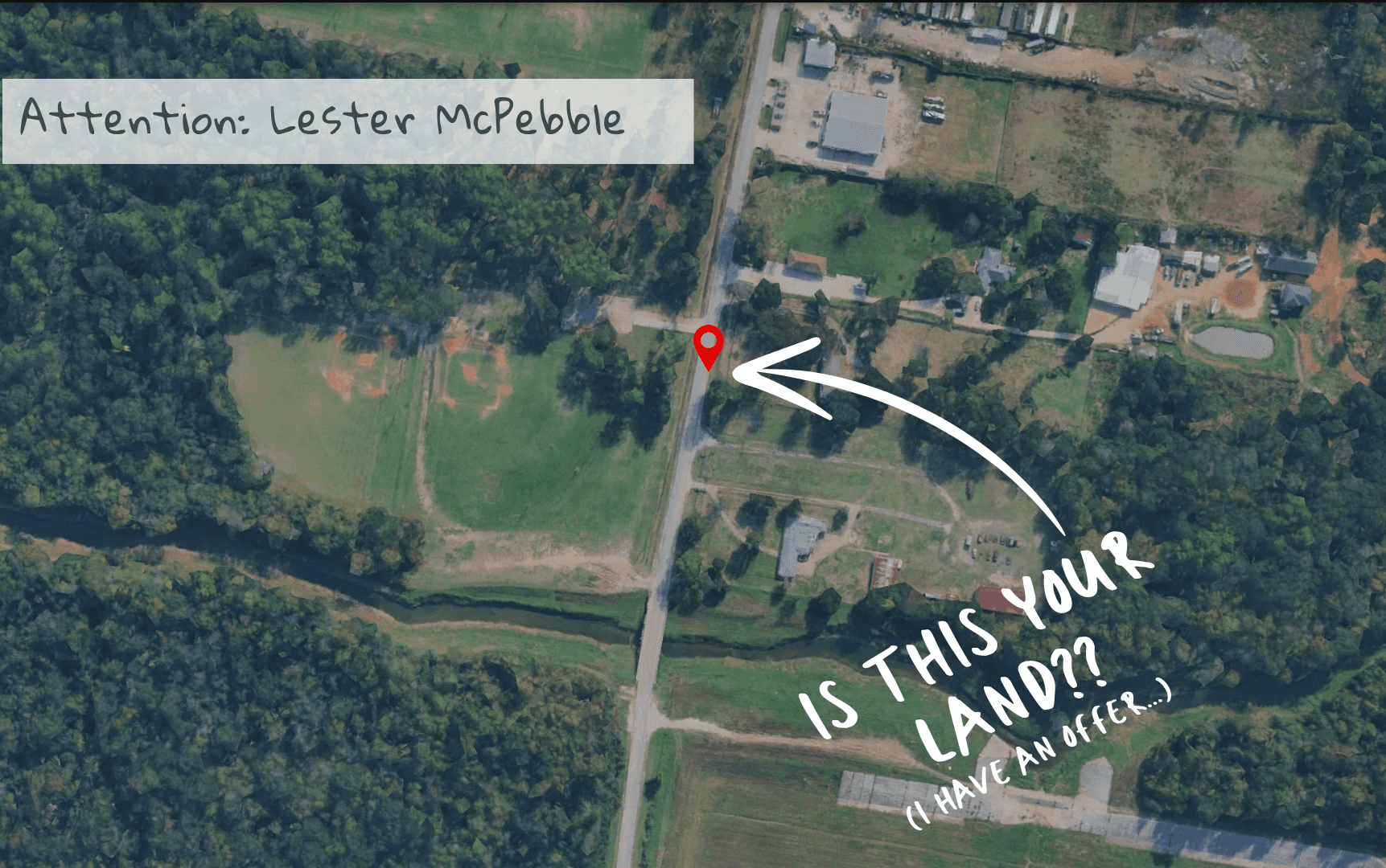 A handwritten note. A small map with a circle around a property. Something that makes the reader pause.