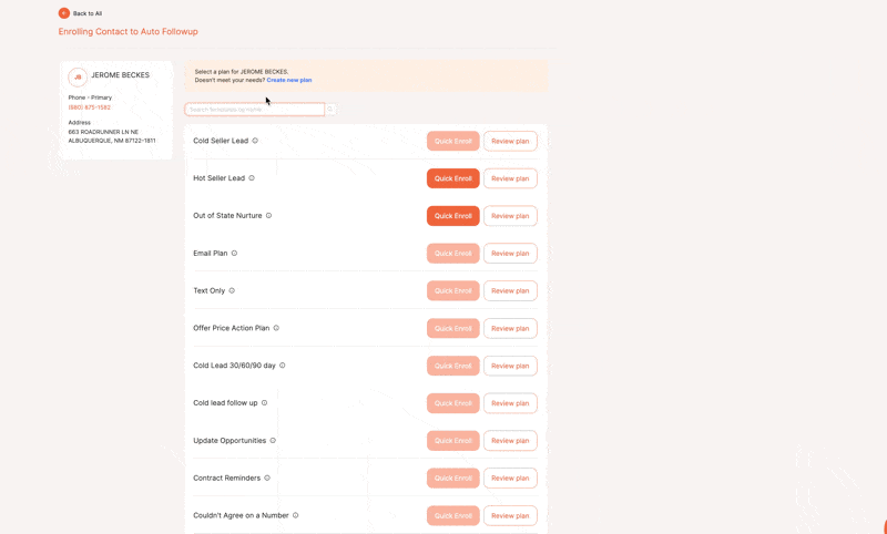 If you have a lot of action plans, finding the right one during enrollment used to be slow. Now you can search plans by name and preview steps before enrolling someone.